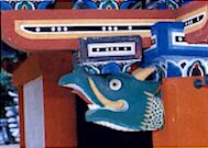様式は三間社入母屋造 (いりもやづくり)で正面に 千鳥破風 (ちどりはふ)があり大きな向拝があって、 それに軒唐破風 (のきからはふ)がついている。 向拝柱上部中央の蟇股 (かえるまた)には龍・雲・浪、 左右の蟇股には表面に牡丹・唐獅子、裏面に雲・宝珠が、内法長押 (うちのりなげし) 正面中央の蟇股には桐、右の蟇股 には鯱、左の蟇股には山茶花・松・幣が、北と南の側面蟇股には鯉・松・ 滝・雲がそれぞれ彫られている。 向拝の手挟 (たばさみ)は透彫 (すかしぼり)で左右二個あり、向かって右は右面に芭蕉に蟷螂 (かまきり)、左面に水に蓮、向かって左は右面に 海藻と貝類、左面に水に花菖蒲が彫られている。 また、向拝の木鼻は獣頭 のような変わった珍しい形が付けてある。 このうち、芭蕉に蟷螂の彫刻は 全国でもここ以外では見られないと言われている。 |